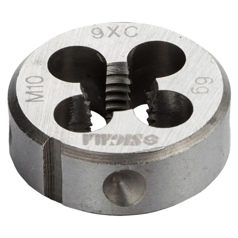 Плашка М10×1.5мм SIGMA (1604281) призначена для нарізування або калібрування зовнішніх різьб. Для роботи закріплюються в тримачах для плашок зі стопорними гвинтами. Для фіксації на зовнішньому циліндрі плашки існують конічні поглиблення і кутовий паз. При нарізанні, різьблення, попередньо, змащують консистентним мастилом.