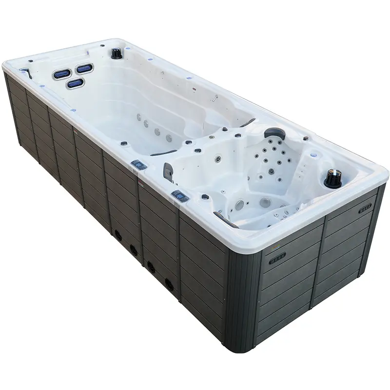 Плавальний СПА-басейн Aquajoy Equilibrium – це басейн для тренувань та СПА-зона в одному корпусі. Системи незалежні: ви можете одночасно підтримувати прохолодну воду для плавання та гарячу для масажу. Гідромасажна частина розрахована на 6 сидячих та 1 лежаче місце, зона для плавання оснащена трьома регульованими форсунками протитечії для ефективних тренувань.