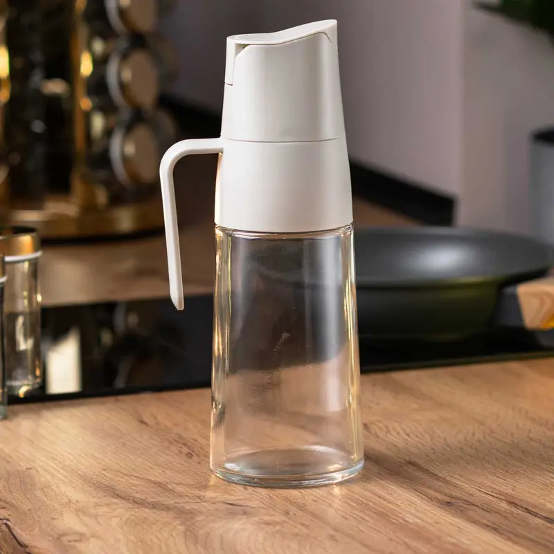 Пляшка для олії та оцту об'ємом 600 мл з гравітаційною кришкою – це стильний і функціональний кухонний аксесуар, що полегшує дозування рідких приправ. Виготовлена з прозорого скла, пляшка має сучасний дизайн, який дозволяє легко бачити вміст і контролювати рівень рідини. Основні характеристики: Об'єм: 600 мл Матеріал: Скло Кришка: Гравітаційна, бежева Дозатор: Автоматичний Переваги: Автоматичний дозатор: Гравітаційна кришка автоматично відкривається при нахилі пляшки і закривається, коли вона повертається у вертикальне положення, що забезпечує точне і рівномірне дозування без проливання. Економія рідини: Дозатор зменшує витрату олії або оцту, допомагаючи контролювати кількість використовуваної приправи та покращувати здоров'я. Елегантний дизайн: Прозоре скло та сучасний вигляд додають стилю вашій кухні. Зручність у використанні: Легко наповнювати і чистити, підходить для миття в посудомийній машині. Універсальність: Ідеальна для олії, оцту, соєвого соусу та бальзамічного оцту. Догляд: Мити пляшку в посудомийній машині або вручну. Протирати гравітаційну кришку вологою ганчіркою. Пляшка для олії та оцту з гравітаційною кришкою стане незамінним доповненням вашої кухні, забезпечуючи зручність і стиль у щоденному використанні.