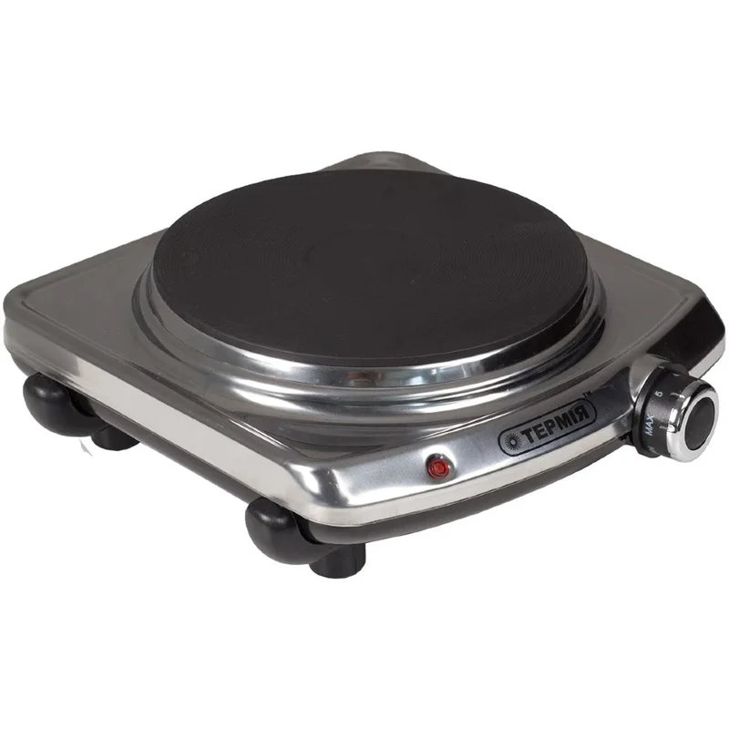 Настільна електроплитка «Термія» це корисний, мобільний і надійний друг на кухні, в подорожах, вдома і на дачі. Прилад перевірений часом і тисячами задоволених покупців. Особливості та переваги: Висока рівномірність розподілу тепла по всій робочій поверхні конфорки. «М'який» вихід на режими нагріву і охолодження. Плоска робоча поверхня конфорки забезпечує простоту чищення. Еластичні вкладиші опор. Світлова індикація включеного стану нагрівального елементу. Безступінчатий, плавний регулятор потужності. Наявність маркування ручки регулятора потужності. Деталі корпусу виготовлені з якісної сталі покритою порошковою емаллю (кольори білий і коричневий) або з нержавіючої сталі дзеркального полірування.