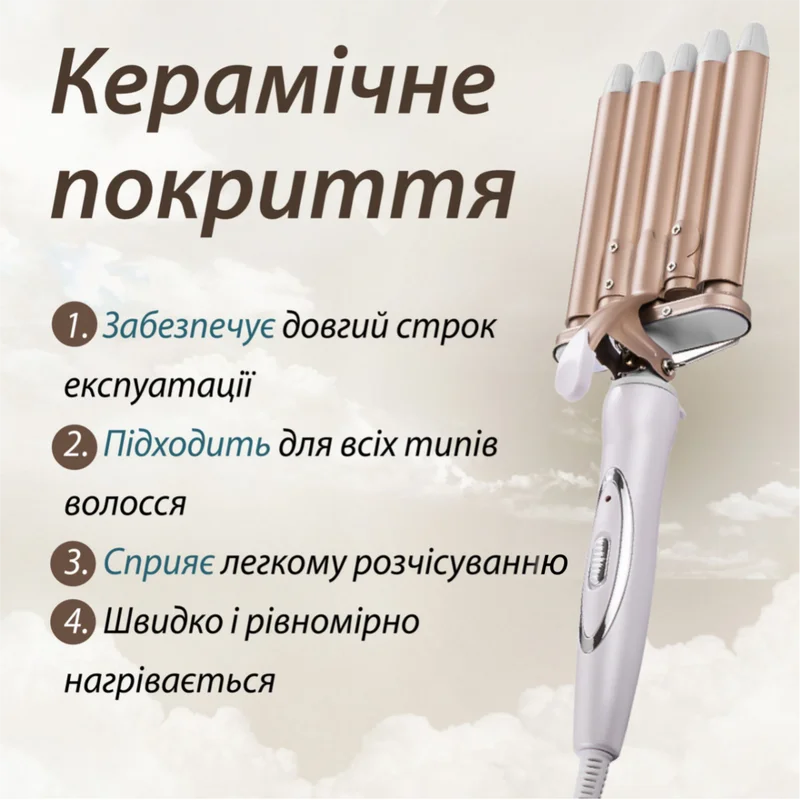Плойка для волосся п'ять хвиль Geemy з керамічним покриттям