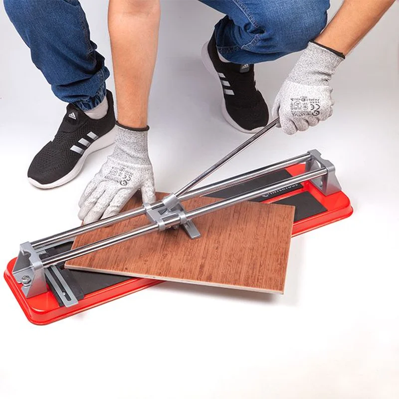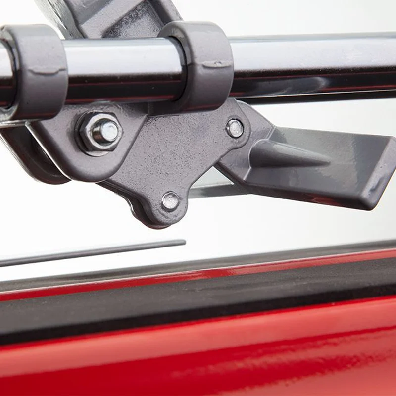 Ручний плиткоріз має лінійний підшипник, який може вільно ковзати по напрямних та значно підвищує точність різання. Ріжучий елемент виготовлений з дуже твердого сплаву, легко розрізає плитку. Край плитки після розрізання рівний, без задирок.