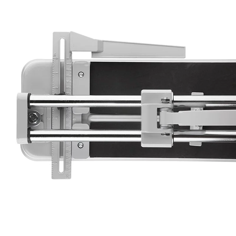 Ріже легко та м'яко завдяки підшипниковій системі. Для більш точного й плавного ходу оснащений калібрувальними гвинтами, за допомогою яких ви можете налаштувати притискний обхват. Також плиткоріз оснащений посиленою платформою та лінійкою для встановлення точного розміру.