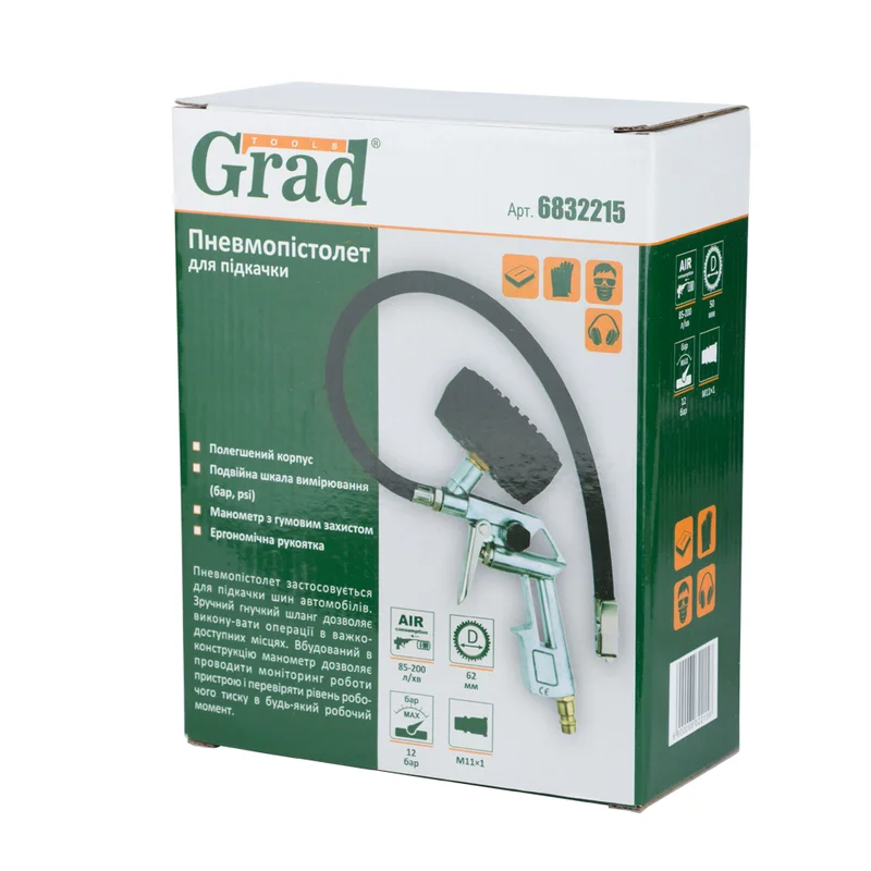 Пневмопістолет для підкачки 85-200 л/хв, 12 бар GRAD (6832215)