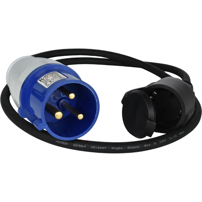 З одного боку адаптер має вилку 32А, з іншого — розетку 16А, що дозволяє підключити прилад зі звичайною вилкою 16А до джерела енергії з розеткою в 32А. Має загальну потужність до 3.6 кВт.