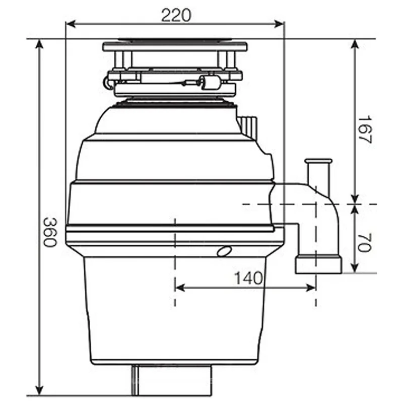 Ця модель розрахована на сім'ю з 3-4 чоловік. Ви зможете встановити його самостійно, замінивши звичайний сифон під своєю мийкою на кухні. Просто включіть холодну воду, а потім натисніть на кнопку, і відходи (овочів, фруктів, дрібні кістки, горіхи і т.д.) практично миттєво перетруться до найдрібніших частинок.