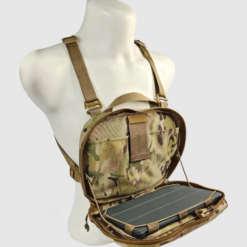 - Ремень для крепления через спину. Предоставляет возможность удобно использовать подсумок с планшетом в открытом виде, а также активно двигаться с закрытым подсумком.