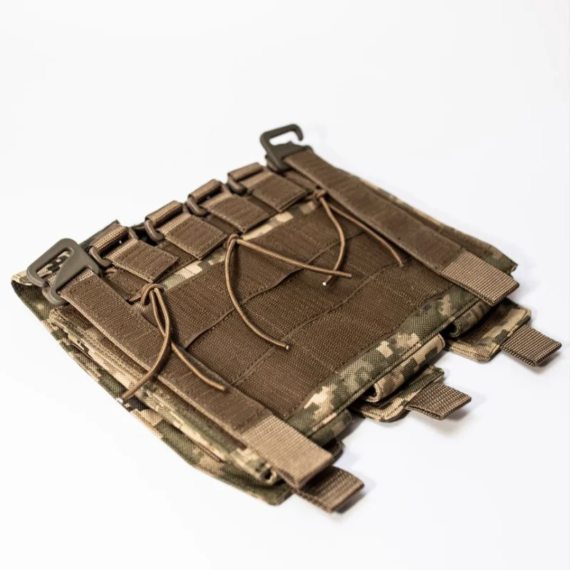 Характеристики: тип снаряжения – тактический подсумок; система крепления – velcro; особая конструкция позволяет легко открывать подсумок, даже когда один такой подсумок прикреплен на другой; дренажное отверстие на нижней панели; Материалы: cordura 1000D с покрытием PU/cordura PE 900D; липучка – Velcro; плотная полиамидная стропа;