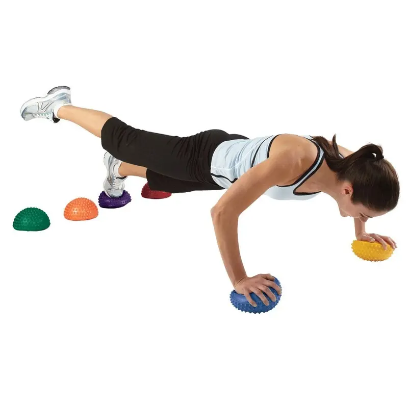 Тренировки с полусферическими массажными мячами-подушками развивают координацию и ловкость, укрепляют осанку. Предоставляют дополнительные возможности для тренировки верхней и нижней частей тела. Улучшают кровообращение за счет стимуляции активных точек на стопах, полезны для профилактики плоскостопия.