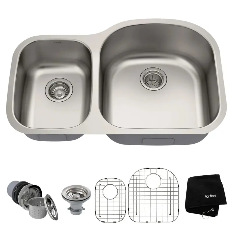- Безкоштовні аксесуари: Захисні ґрати для дна (2 шт.), набір з трьох кошиків-фільтрів, рушник Kraus.