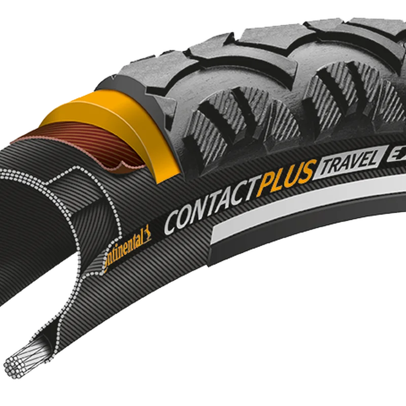 Contact Plus Travel - это универсальная покрышка для города и сельской местности. Резина имеет отличное сцепление с асфальтированным покрытием благодаря ровному протектору с водоотводящими каналами, а бока протектора покрыты резиновыми шипами, которые обеспечивают устойчивость на поворотах и грунтовых дорогах.