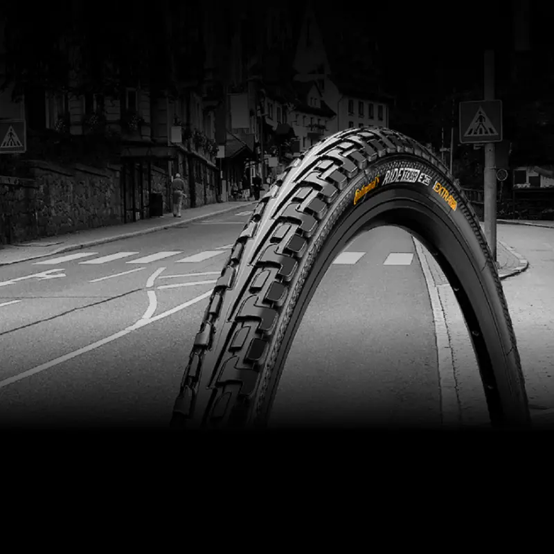 Continental Ride Tour - это универсальная покрышка для шоссе, турингов, гравийных и городских велосипедов. Подходит как для ежедневной езды на работу, так и для дальних поездок по грунтовым и каменистым тропинкам. Характерный рисунок имеет ровный участок по центру для хорошей скорости и сцепления с асфальтированным покрытием, а шипованные бока протектора дают возможность входить в повороты на высокой скорости или выезжать на загородные дороги.