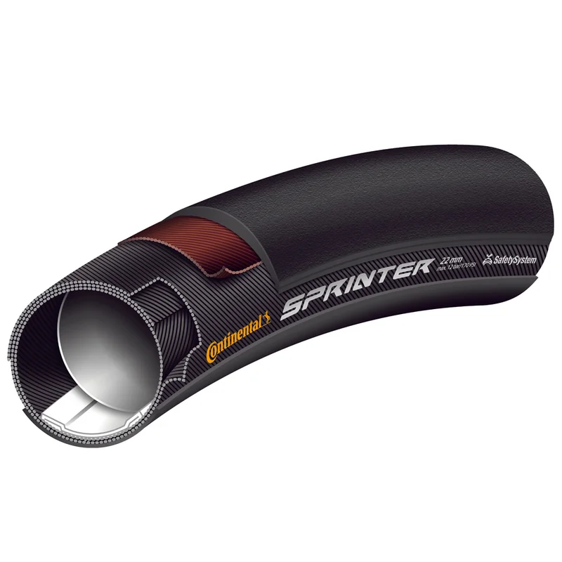 Continental Sprinter - эффективные шины для ровного городского покрытия, подходят для использования в триатлоне, где победные характеристики покрышки играют ключевую роль. Нейтральный скользкий профиль создан для набора высокой скорости, по условно прямым участкам.