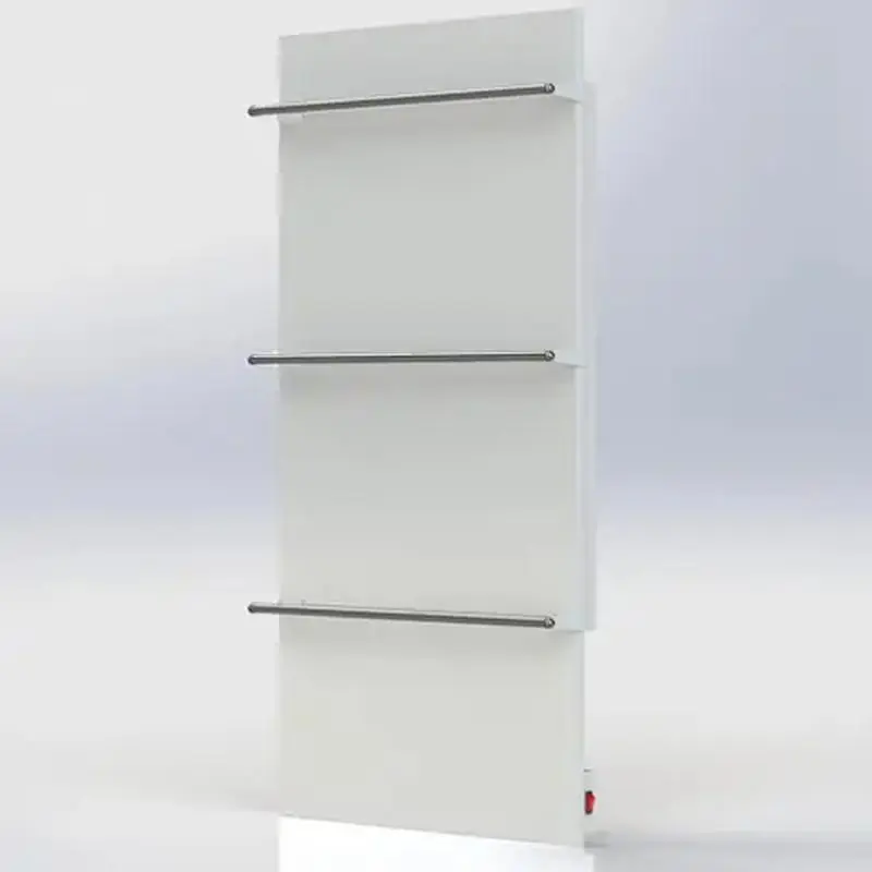 С размерами 1200х600 мм подойдет для больших санузлов, в которых будет выполнять сразу две функции: полноценного обогревателя и полотенцесушителя. С мощностью 500 Вт модель сможет обогреть ванную площадью до 12 м2. Корпус и крепления из нержавеющей стали обеспечивают изделию защиту от ржавчины. Белая керамическая плита добавляет стиля и служит аккумулятором тепла.