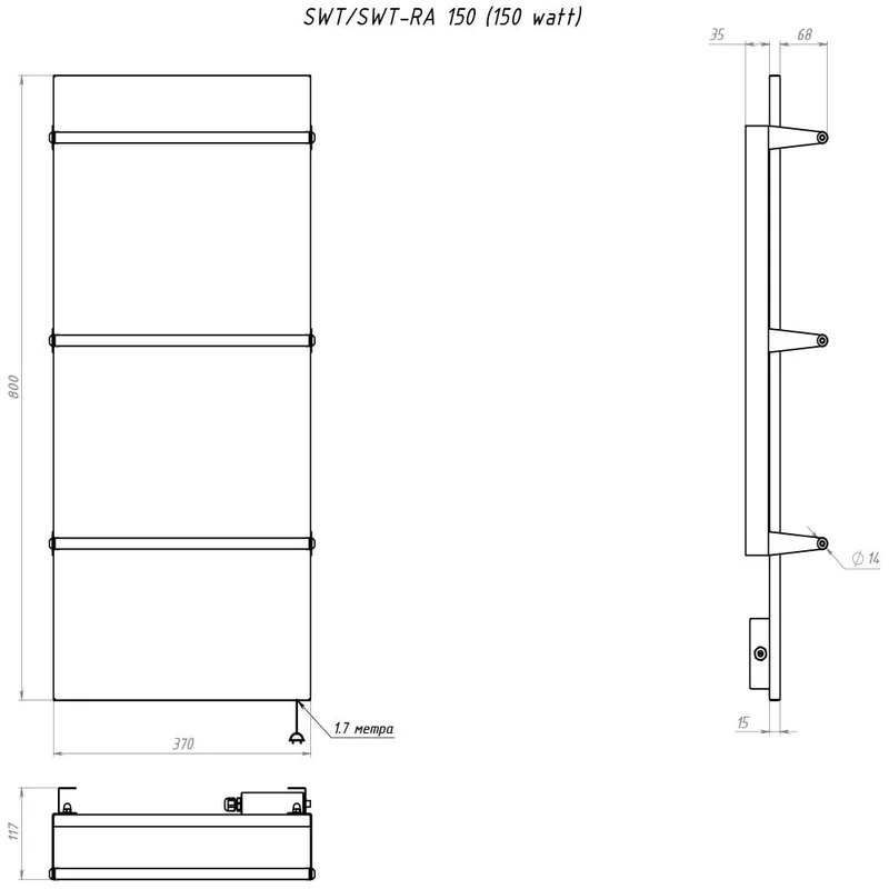 Полотенцесушитель металлический SunWay SWT 150, 370х800х15 мм, хром