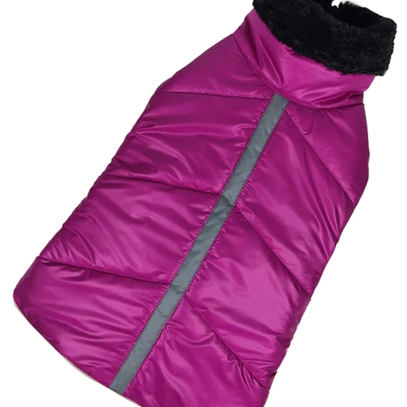 Попона зимова для середніх собак зі світловідбиваючої стрічкою малинова P-22