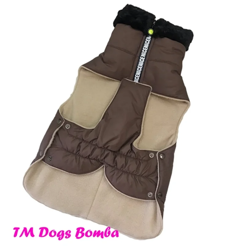 Попона зимова для середніх собак зі світловідбиваючою стрічкою коричнева P-18