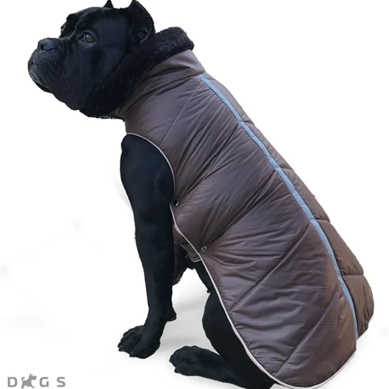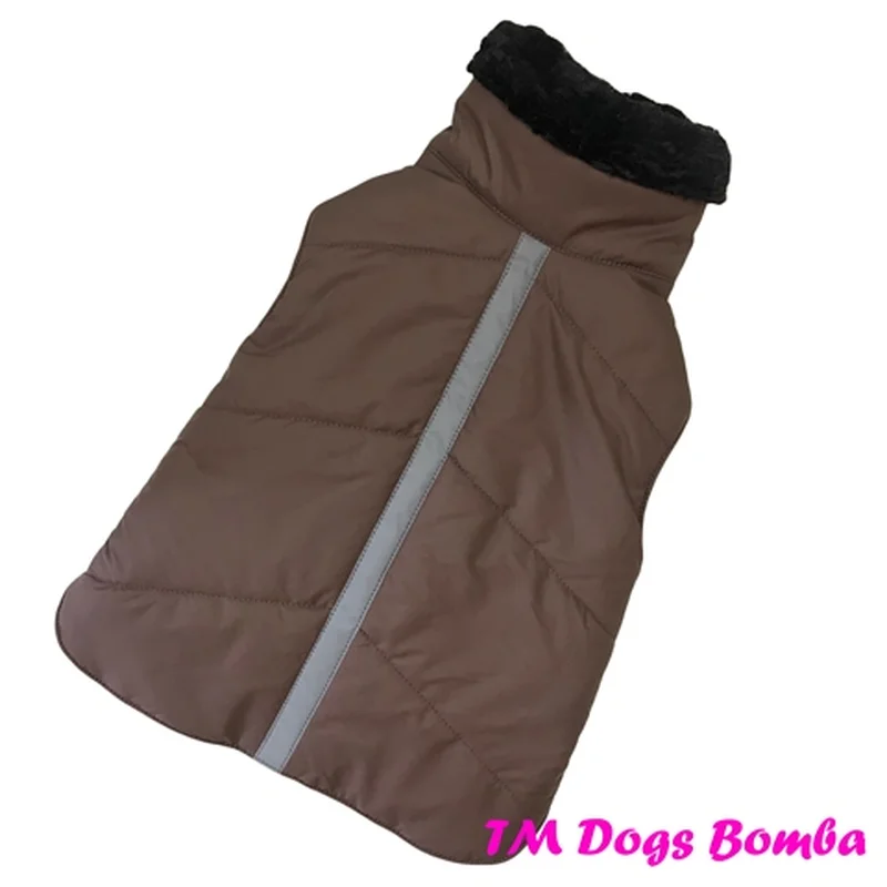 Попона зимова для середніх собак зі світловідбиваючою стрічкою коричнева P-18