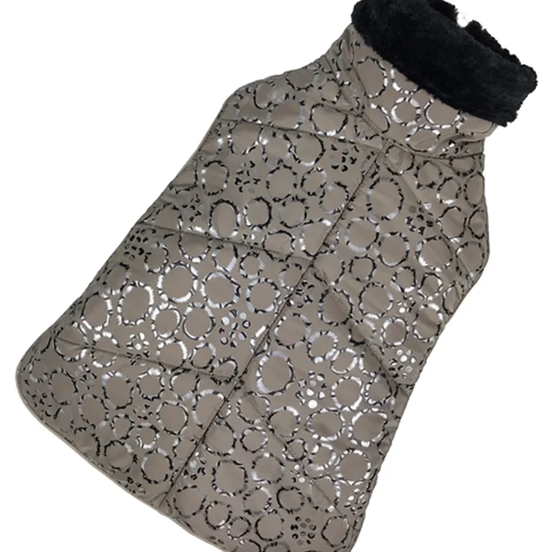 Попона зимова для середніх собак бежева з срібними візерунками P-21