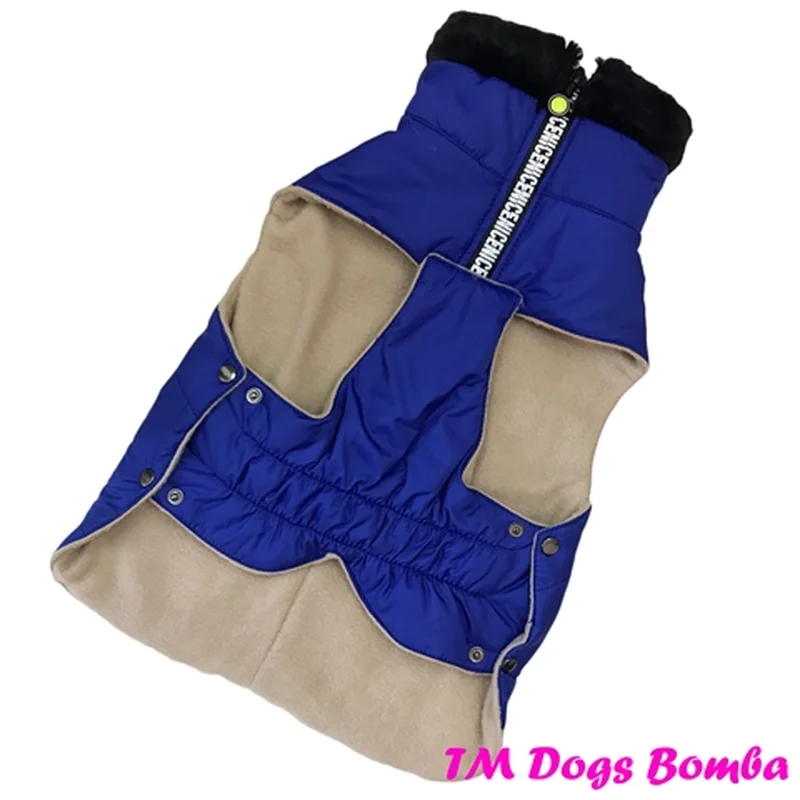 тканина водовідштовхувальна плащівка наповнювач синтепон підклад фліс обробка горловини з плюшевого хутра на спині світовідбівна стрічка на животі два ряди кнопок для регулювання обхвату грудей прогумований живіт для комфортної посадки модель унісекс на фото розмір L, вага собаки 45 кг