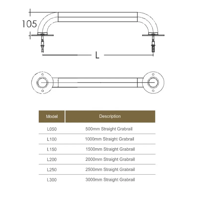 Поручень Emaux L300 призначений для підвищення безпеки і зручності користування басейнами. Виготовлений з полірованої нержавіючої сталі марки AISI-316. Поручні кріпляться до борту за допомогою фланців на болтах (з використанням пластикового дюбеля). Поручень можна розташувати по периметру чаші басейну в якості зони відпочинку для тих, хто купається на глибині. Можливе як горизонтальне, так і вертикальне розміщення.