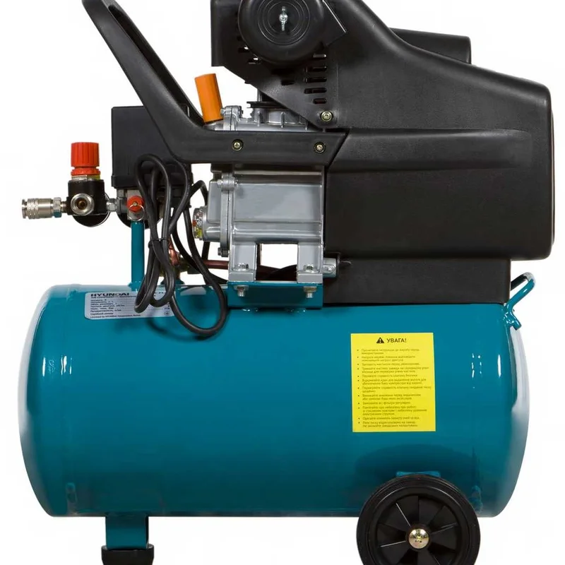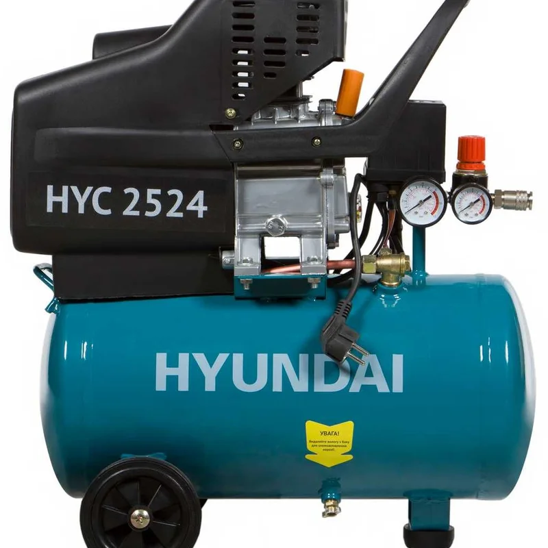 ОСНОВНЕ ПРИЗНАЧЕННЯ Масляний повітряний компресор HYC 2524 використовується для отримання потоку стисненого повітря та призначений для робіт з легким пневматичним інструментом, з фарборозпилювачами, для очищення та продування різних деталей та агрегатів. На компресори HYUNDAI вказані реальні характеристики, які дають змогу правильно підібрати моделі для Ваших потреб. ПРИНЦИП РОБОТИ Формування стисненого повітря відбувається у його основному вузлі – компресорній голівці. Її конструкція дуже схожа на двигун внутрішнього згоряння – циліндр, поршень, поршневі кільця, шатун, колінчастий вал, а також система впускних та нагнітальних клапанів, що працює від перепаду тисків. У масляних компресорах в компресорну головку обов'язково заливається масло для змащування деталей, що труться. ОСОБЛИВОСТІ Легкий, зручний у використанні за невеликого споживання повітря Діаметр поршня 48 мм забезпечує високу продуктивність. Потужний електричний двигун забезпечує стабільну подачу повітря при різких перепадах у навантаженні Мідна обмотка двигуна виділяє менше теплової енергії та підвищує термін використання компресора Збільшено ребра кожуха охолодження для кращого тепловідведення Додатково для захисту від критичного перегріву в електродвигун встановлено надійне термореле. Колінчастий вал для більшої витривалості загартований куванням Сталевий бак (ресивер) виготовлений із високолегованої сталі - більш стійкою до корозії. В ресивері встановлений запобіжний клапан високого тиску та дренажний клапан зливу конденсату Комплектація: 1 Компресор 1 шт 2 Повітряний фільтр 1 шт 3 Сапун 1 шт 4 Транспортувальні колеса 2/4шт (залежно від моделі) 5 Закріпна опора 1 шт 6 Інструкція з експлуатації 1 шт 7 Упаковка 1 шт