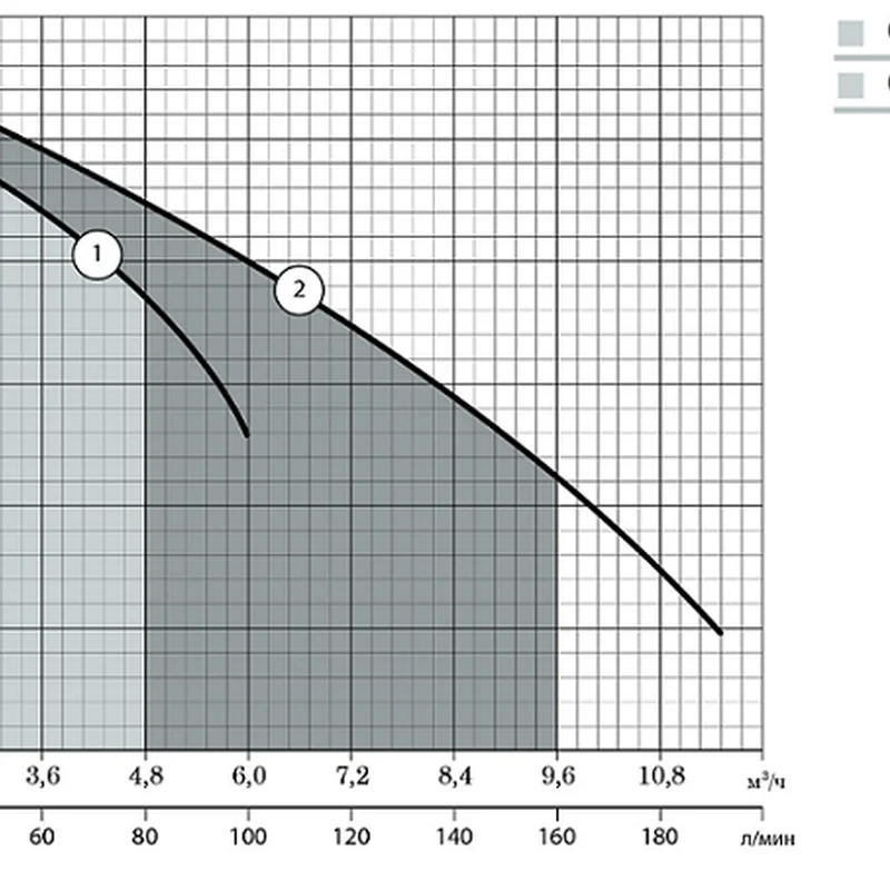 - Максимальная объемная подача до 12 м³/ч (200 л/мин)