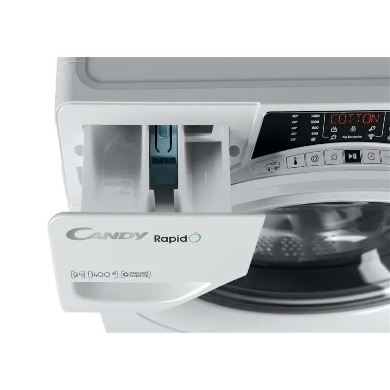З Candy Rapido економте свій час щодня! У нашому метушливому житті — час став найціннішою річчю. Саме цим фактом і керувалися розробники нової пральної машини Candy RapidO: швидке й ефективне прання допоможе вам вивільняти час для улюблених занять, поліпшуючи в такий спосіб якість вашого життя. 65% людей надають перевагу швидким програмам, але часто підібрати правильну комбінацію для найкращого результату — досить складне завдання. Вкотре компанія Candy пропонує прості, і водночас розумні та інноваційні рішення: найповніший набір з 9 програм швидкого прання й ексклюзивну функцію Snap & Wash (сфотографуйте та періть). Швидше й розумніше, чи не так? Щоденне прання ще ніколи не було таким швидким Готові спробувати щось нове? За допомогою смартфона активуйте через застосунок Candy simply-Fi ексклюзивну функцію Snap&Wash (сфотографуйте та періть) і знайдіть найоптимальніший цикл для прання вашої білизни. Для допомоги з вибором програми швидкого прання просто сфотографуйте купу змішаного одягу. Ця функція порекомендує найоптимальнішу програму прання, температуру й швидкість викручування. Розумний спосіб заощадити час. Нехай мрії стануть реальністю Проводьте більше часу зі своєю сім’єю. Скоротіть час на прасування білизни вдвічі завдяки функції пари Easy Iron! Обробка парою розгладжує заломи на вологій білизні і в результаті скорочує час на її прасування. Волокна тканини відновлюються і освіжаються завдяки видаленню неприємних запахів. Кожна програма включає спеціальну обробку парою для забезпечення максимальної ефективності очищення відповідно до типу тканини і кольору білизни. Машина, яка з вами розмовляє Пральну машину RapidO оснащено вбудованим модулем Wi-Fi для поліпшення вашого досвіду взаємодії з машиною. Поради щодо прання завжди під рукою. За допомогою застосунку Candy simply-Fi ви можете спілкуватись з RapidO та отримувати відповіді щодо ефективного прання, видалення плям і багато чого іншого. Максимальний комфорт із ширшим люком, розташованим вище Інноваційний ергономічний дизайн Candy Rapid розробили спеціально, щоб позбавити вас будь-якої мороки під час прання. Ще ніколи не було так легко й зручно завантажувати та діставати білизну й керувати пральною машиною. Інверторний двигун Завдяки надійному і довговічному безщітковому двигуну з цифровим управлінням, пральні машини Candy працюють дуже тихо — усього 51 дБ.