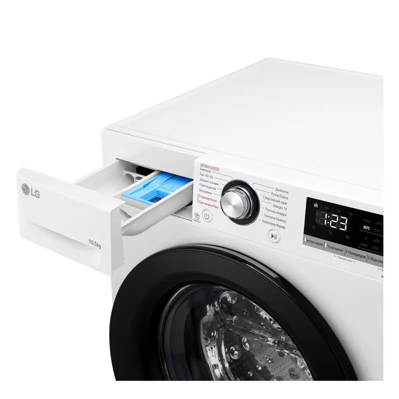 Стандартна пральна машина з фронтальним завантаженням на 10.5 кг. Клас енергоефективності A+++, максимальна швидкість віджиму 1400 об/хв. Оснащена технологією визначення властивостей тканини AI DD та функцією обробки парою Steam.