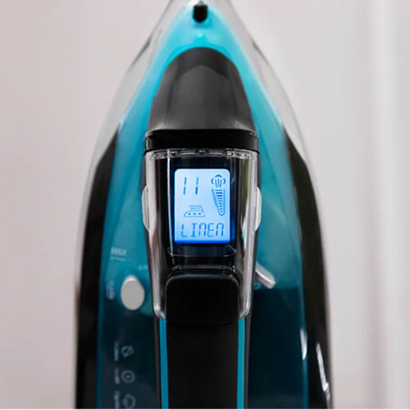 Інтелектуальний повний контроль: інтуїтивно зрозумілий та інноваційний контроль температури за допомогою РК-дисплея. Вибирайте тканину і насолоджуйтеся максимально точною глажкою. Power Steam Control: технологія, що забезпечує постійну швидкість подачі пара до 55 г/хв. За допомогою точної ручки встановіть відповідний рівень пари залежно від випадку. Інноваційна технологія, яка спрощує ковзання по одягу, а також забезпечує більш плавне і безпечне глажіння. Fast Steam: технологія, яка скорочує час попереднього нагріву до мінімуму. Легке наповнення: легке і зручне наповнення водою. Система захисту від крапель: запобігає витоку з праски крапель конденсованої води і фарбування одягу. Ергономічна, легка і зручна праска.