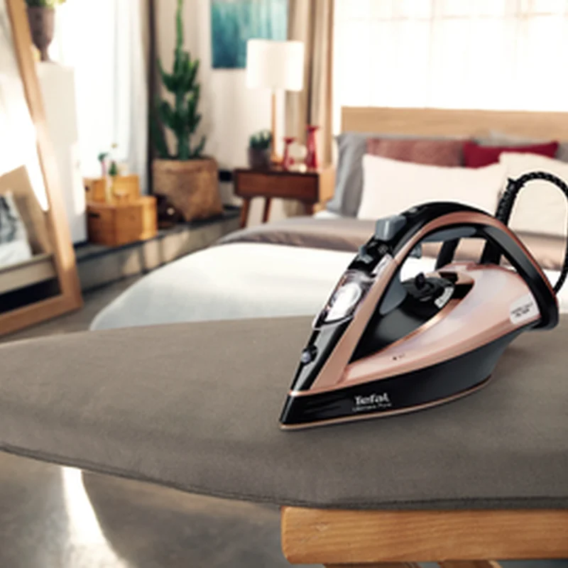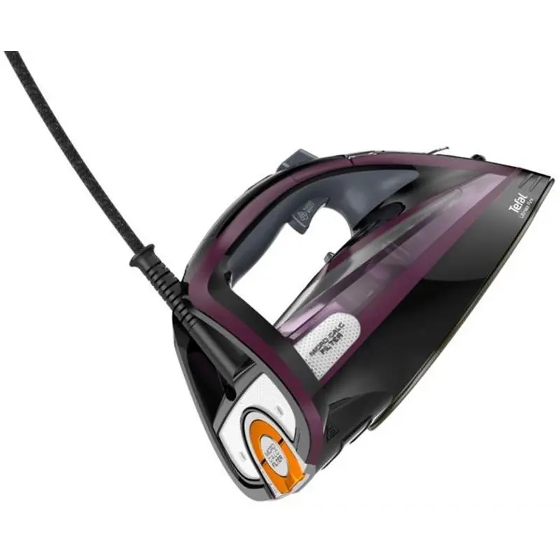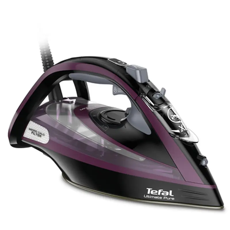 Парова праска Ultimate Pure FV9835E0 від Tefal поєднує в собі неймовірну потужність пари та ексклюзивну систему видалення накипу для ідеального прасування. Насолоджуйтесь безтурботним прасуванням і винятковими результатами. Ультрапотужна парова праска 3000 Вт для швидкого нагрівання та високої продуктивності. Ексклюзивний фільтр Micro-Calc 2-в-1. Абсолютно нова ексклюзивна система видалення накипу використовує інноваційний фільтр Micro-Calc для дії 2-в-1: накип зупиняється фільтром, і чиста пара подається на білизну. Фільтр Micro-Cac легко знімається і миється. Потужний паровий удар для найжорсткіших складок. Інтенсивна потужність парового удару 240 г/хв розгладжує складки на товстих тканинах і з легкістю впорається навіть з найбільш непіддатливими складками. Підошва Durilium AirGlide Autoclean: найшвидше і найлегше ковзання Технологія Durilium AirGlide забезпечує найкраще ковзання для швидкого та легкого прасування. Вона також забезпечує оптимальну дифузію пари для високоефективного прасування. Покриття Autoclean, розроблене Tefal, допомагає підтримувати підошву без плям і в ідеальному стані з плином часу. Інтелектуальне автоматичне вимкнення для додаткової безпеки. Праска автоматично вимикається. Якщо залишити у вертикальному положенні, вона вимкнеться через 8 хвилин. Якщо залишити в горизонтальному, праска вимкнеться через 30 секунд. Антикрапля, щоб білизна залишалася бездоганною Функція "антикрапля" запобігає протіканню води та появі плям на білизні під час прасування. Автоматичне налаштування пари: правильна кількість пари для кожного предмета одягу. Завдяки функції "Автоматичне подавання пари" вам не потрібно турбуватися про вибір кількості пари. Просто виберіть температуру для типу білизни, яку ви прасуєте, а праска зробить все інше. Великий резервуар для води для тривалого прасування. Завдяки резервуару для води об'ємом 350 мл ви зможете з комфортом прасувати дуже довго.