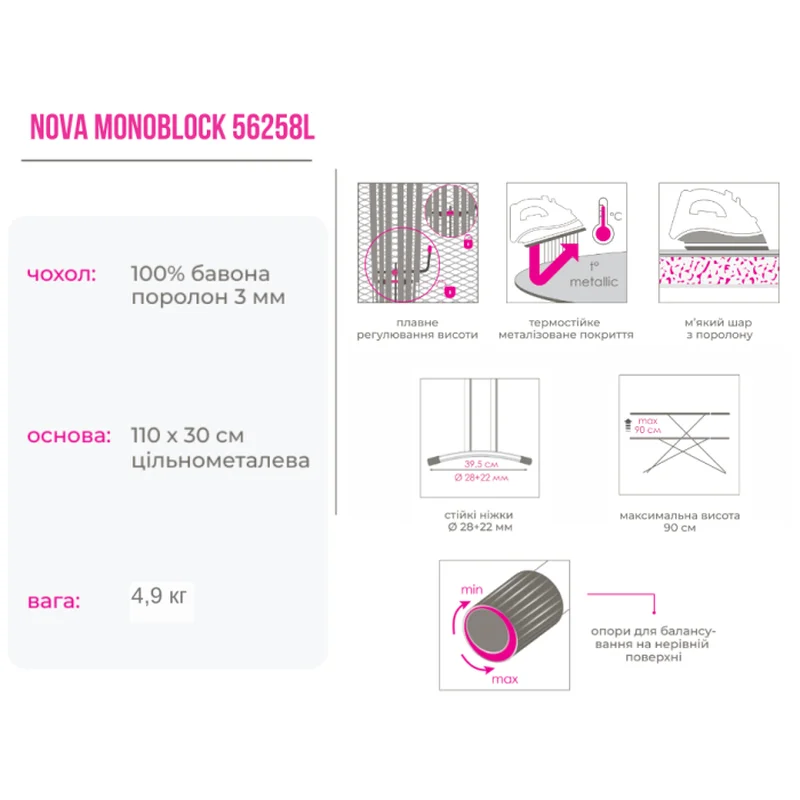 Прасувальна дошка EuroGold Nova Design monoblock 56258L (1200х380 мм)