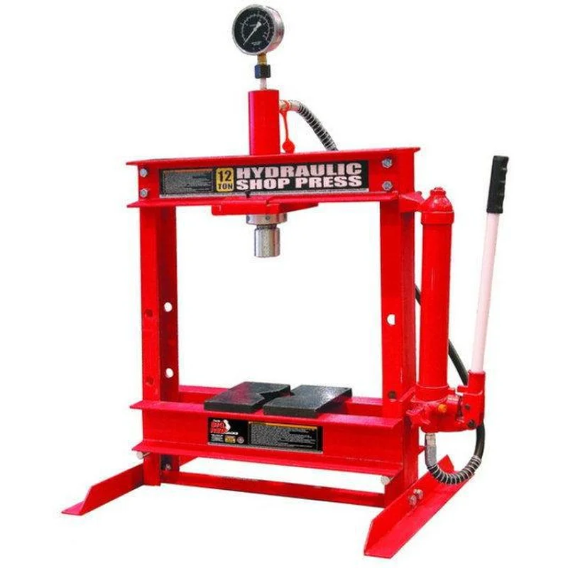 Прес гідравлічний настільний 12 т TORIN TY12001 TORIN TY12001 - это популярная модель настольного гидравлического пресса, которая широко используется в автосервисах, мастерских, СТО при ремонтно-монтажных работах и обслуживании различных видов авто и мототехники. С помощью этого пресса выполняют операции по запрессовке, выпрессовке, гибке и правки деталей различной конфигурации. Ця модель настільного преса має міцну конструкцію і компактні розміри, обладнана манометром. Привід - ручний гідронасос. Вага верстата - 57 кг Максимальне зусилля преса - 12 тонн, що дозволяє успішно виконувати більшість завдань з ремонту та обслуговування автотранспорту та інших механізмів. Ширина станини - 500 мм. Хід штока - 175 мм Габарити - 500x790x1060 мм