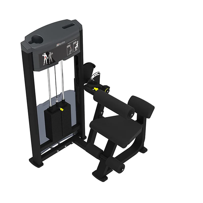 • Карта выполнения упражнения расположена в верхней части грузоблочной стойки. Иллюстрации с пошаговыми инструкциями наглядно демонстрируют правильное положение тела при выполнении упражнений и задействованную группу мышц.