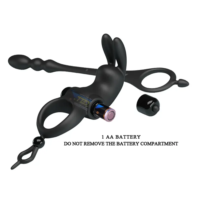 Віброкільце Pretty Love Vibration Penis Sleeve V - це не просто ерекційне колечко з додатковою функцією вібрації, а справжній механізм із цікавою конструкцією, який надає кілька видів інтимної стимуляції. Pretty Love Vibration Penis Sleeve V складається з ерекційного кільця, яке надівається на основу ерегованого члена, перетискає його та запобігає відтоку крові. Завдяки йому член стає більш твердим та міцним, а статевий акт – тривалим та чуттєвим. Над ерекційним кільцем розташований кліторальний стимулятор у вигляді кролика з довгими гнучкими вушками. Цей додатковий елемент подарує Вашій партнерці під час сексу трепетні та чуттєві ласки клітора, які наблизять її до оргазму. Окремо від кільця йде анальний стимулятор із кільцем для мошонки. Цю знімну конструкцію можна прикріпити до віброкільця і насолоджуватися одночасною стимуляцією і члена, і анальних ерогенних зон. Кільце одягається на мошонку, а довгий стимулятор з кульками на кінчику вміщується в анус. Таким чином, стимулятор буде приємно та яскраво стимулювати анальні стінки та ерогенні зони. За бажанням анальний стимулятор можна від'єднати та користуватися кожним елементом окремо.
