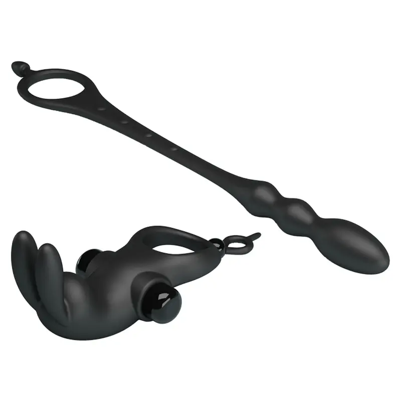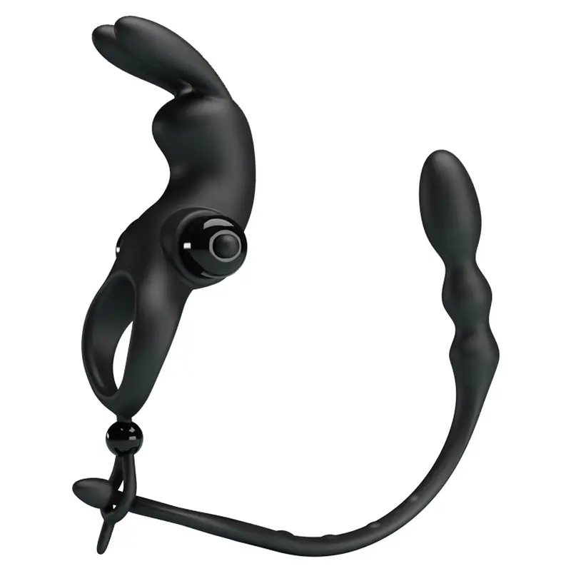 Віброкільце з анальним стимулятором Pretty Love Vibration Penis Sleeve V Black, чорне