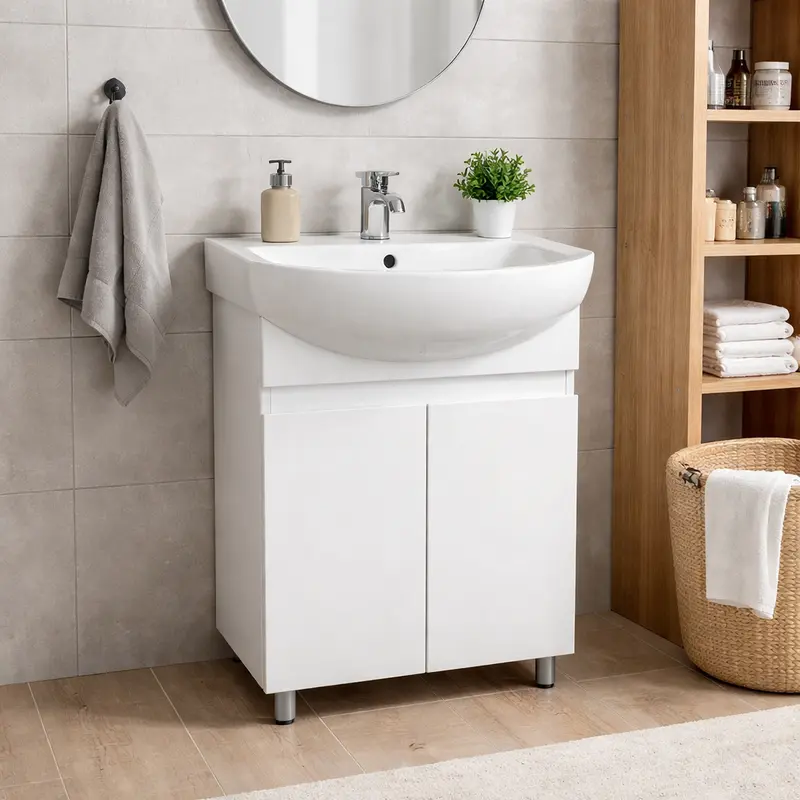 Комплектується умивальником, що забезпечує не тільки естетичне задоволення, а й функціональність використання. Вміру просторий сантехнічний елемент і зручне розташування шухляд дадуть вам змогу зручно організувати простір і зберігати необхідне ванне приладдя. Цей комплект вирізняється надійністю та довговічністю, гарантуючи задоволення ваших потреб і радість від використання протягом довгих років.