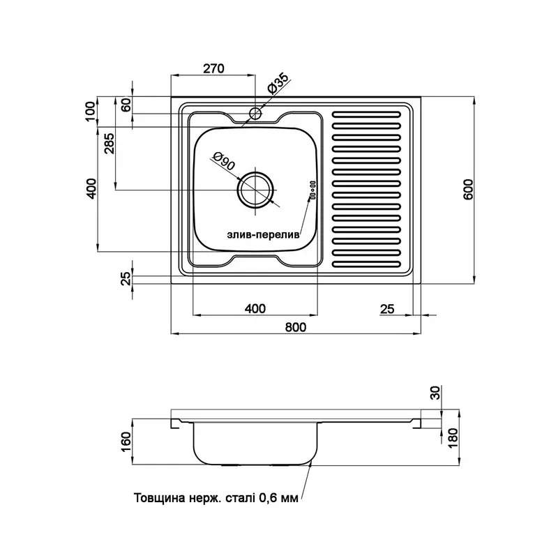 Мийка для кухні з харчової нержавіючої сталі AISI 201 WAL-S8060L-16-06N - це практичне і стильне рішення для вашої кухні, що забезпечує високий рівень зручності і надійності у використанні. Вона призначена для накладного монтажу, що забезпечує міцне з'єднання з поверхнею.Основні характеристики мийки WAL-S8060L-16-06N:- Форма мийки: прямокутна з крилом, що надає вашій кухні сучасний і стильний вигляд.- Виготовлена з високоякісної нержавіючої сталі AISI 201, що гарантує елегантний зовнішній вигляд і довгий термін служби, а також стійкість до корозії і пошкоджень.- Отвір під змішувач надає можливість установки змішувача для більш зручного використання мийки.- Сифон в комплекті для полегшення установки.- Товщина металу: 0,6 мм, що забезпечує легку вагу (3 кг) і міцність конструкції.Ця універсальна мийка ідеально підходить для різних кухонних завдань. Гарантований термін служби - 36 місяців, що підкреслює високу якість і надійність цього продукту. Розташування крила зліва робить її зручною у використанні, а матова поверхня надає їй елегантний і сучасний вигляд.