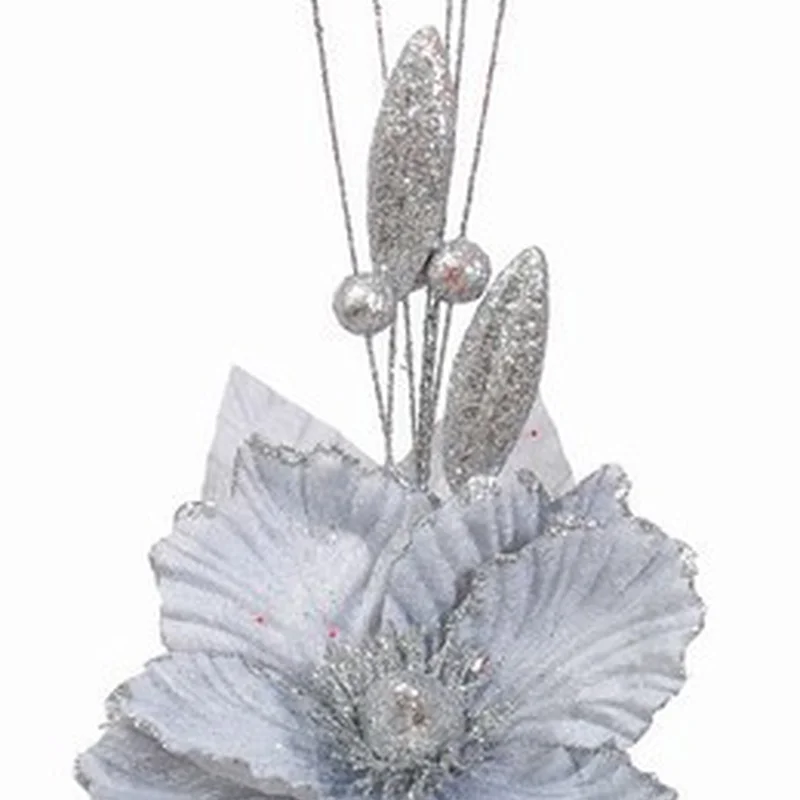 Прикраса декоративна Квітка, 40 см, текстиль, колір сріблястий