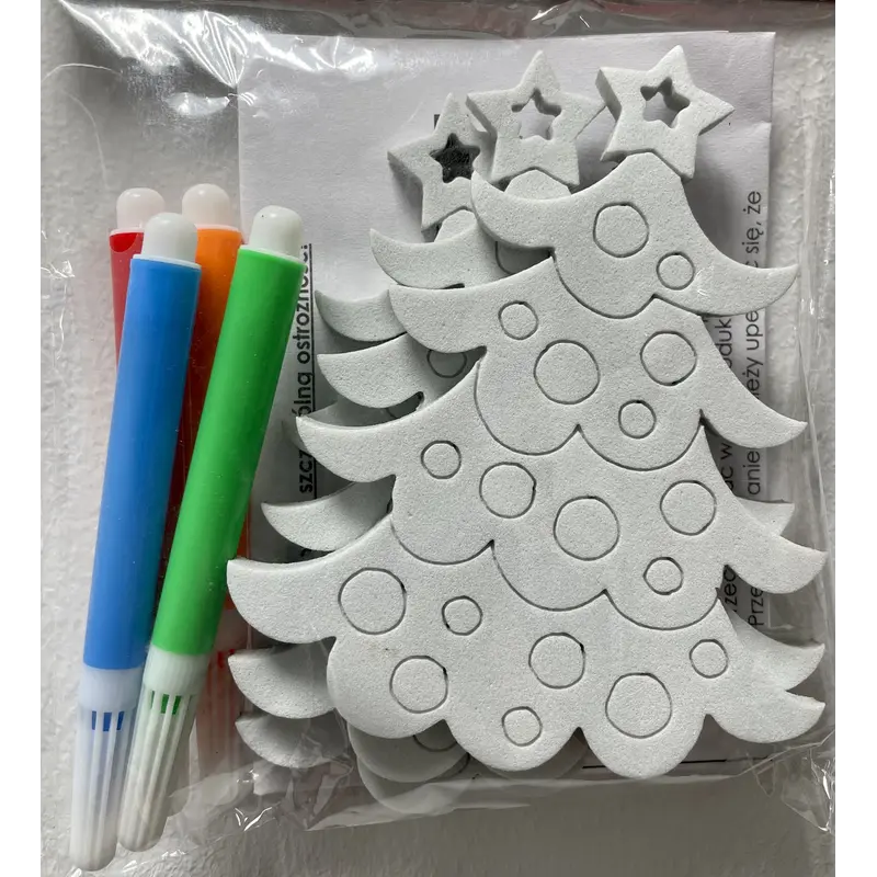Прикраси для розфарбовування "Ялинка" Chomik, комплект 3 шт, 10 см та фломастери 4 шт