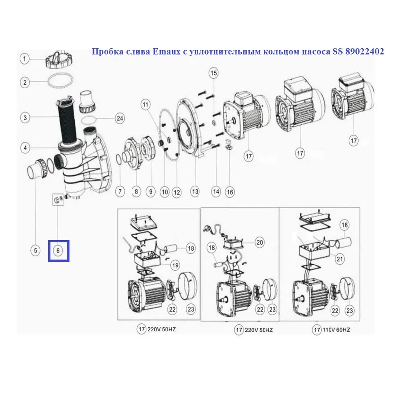 Пробка зливу Emaux з ущільнювальним кільцем насосу SS 89022402.