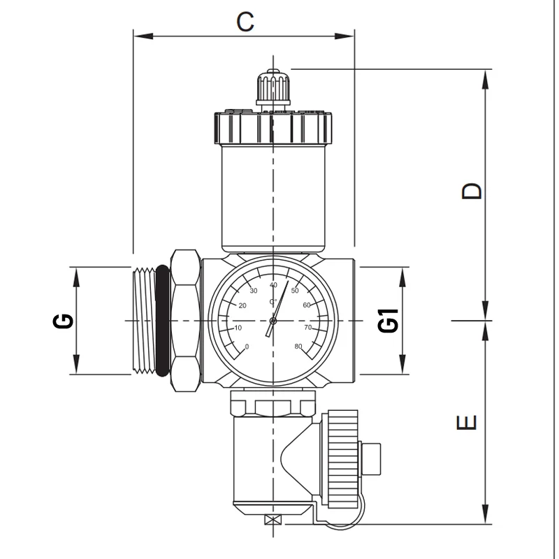 Проходная сливная группа Roho R612-100 - 1" (с воздухоотводчиком) (RO0154)