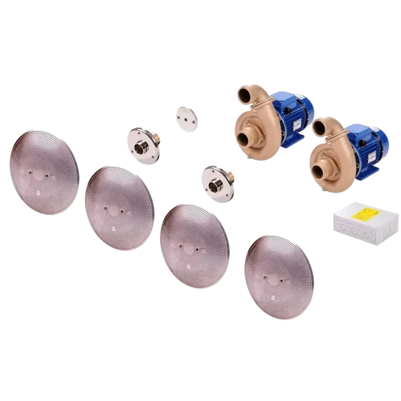 Лицьові частини виготовлені з нержавіючої сталі марки 316L, насос та фітинги виконані з бронзового сплаву, стійкого до корозії, впливу ультрафіолету та хімічних реагентів.