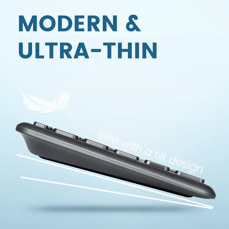 Бесшумный набор текста - низкопрофильные клавиши, которые обеспечивают комфорт без громкого звука при наборе текста благодаря стабильному переключению клавиш-ножниц; Наслаждайтесь быстрым набором текста, где бы вы ни работали