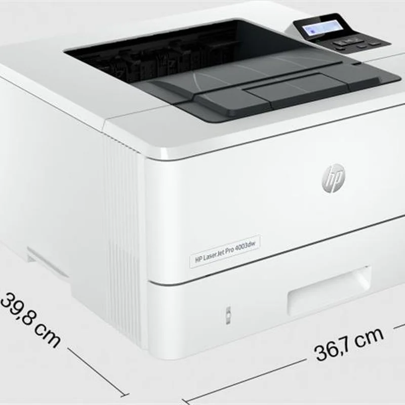 Принтер HP LaserJet Pro 4003dw створений для максимальної продуктивності завдяки високій швидкості та надійному обладнанню, що забезпечує зручне повсякденне використання, де б не відбувалася робота, щоб ви могли більше зосередитися на своєму бізнесі. Підтримуйте свою динамічну робочу команду за допомогою цього високошвидкісного інтелектуального принтера, що ідеально підходить для 10 користувачів. Прискоріть робочий процес завдяки блискавичній швидкості для роботи в умовах підвищеного попиту. Підключайтесь на свій розсуд. Вибирайте між Ethernet, дводіапазонним WiFi або високошвидкісним USB. Не слід чекати початку друку. Принтер не потребує часу на розігрів та завжди готовий до роботи. Продуктивність як у долоні. Друкуйте та заощаджуйте час за допомогою функції Shortcuts від HP Smart. Працюйте без затримок та безладу завдяки картриджам з функцією автоматичного зняття друку.