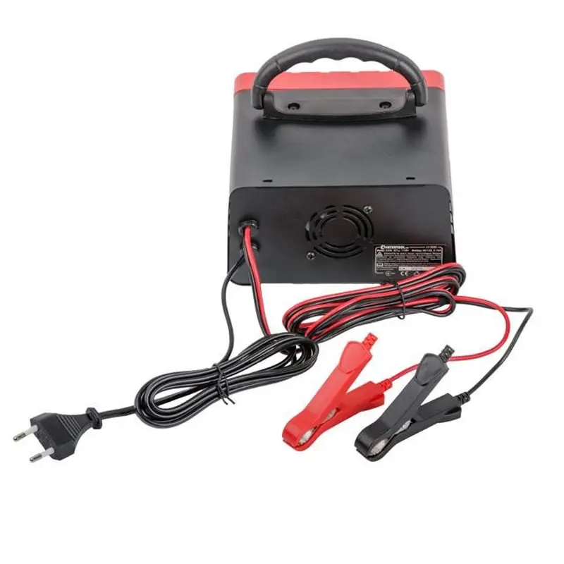 Зарядний пристрій має повністю ізольовані клеми та зручну ручку для транспортування. Амперметр відображає силу струму батареї для контролю процесу зарядки. Пристрій дуже простий у використанні, проте рекомендуємо заряджати в приміщенні, яке провітрюється, та не залишати без нагляду під час зарядки.