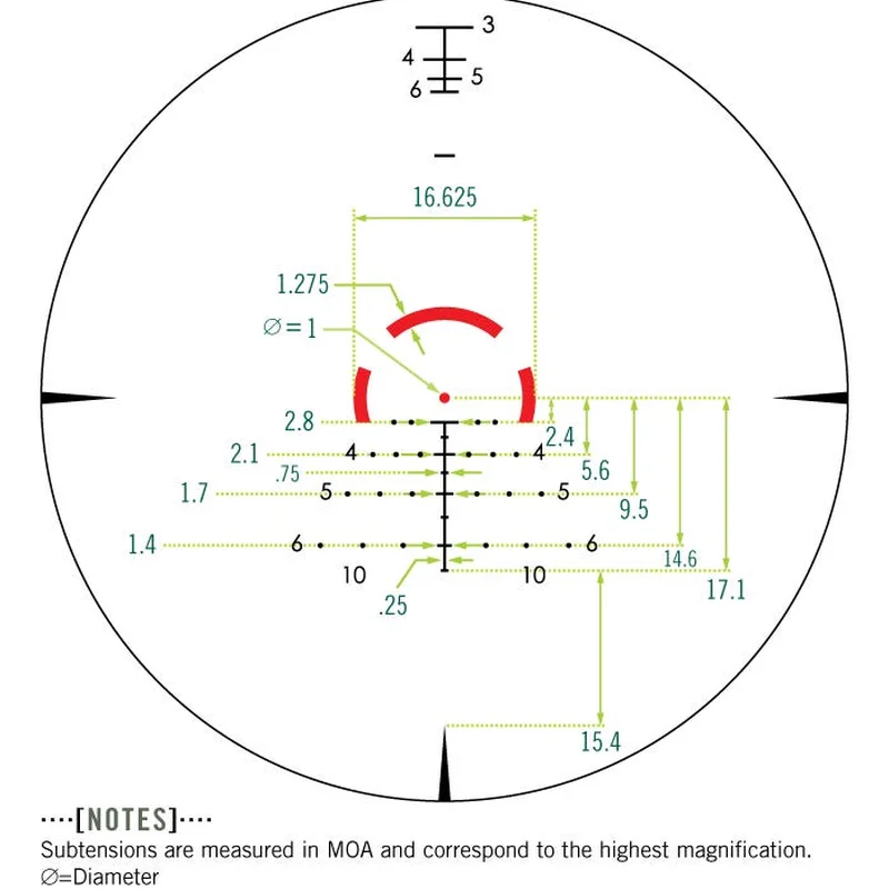 - Підсвічування прицільної сітки: червоне, регульоване, 11 рівнів яскравості.