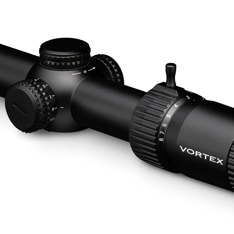 Для технічного ведення швидкісної стрільби на ближніх і середніх дистанціях потрібен надійний приціл з відмінною ергономікою та бездоганною якістю складання, що має ряд особливих характеристик, необхідних для конкретних завдань, і здатний гарантувати точність та високу повторюваність стрільби при кожному натисканні на курок. Саме такими є приціли Vortex Strike Eagle, що мають високоякісну оптику, укладену в міцний монолітний 30 мм алюмінієвий корпус. Маючи початкове збільшення 1х приціл забезпечує по-справжньому широке поле зору, полегшуючи прицілювання при швидкісній стрільбі. У той же час завдяки максимальній кратності при денному освітленні дана модель стає дуже універсальною, дозволяючи точно вразити віддалені цілі. Vortex Strike Eagle 1-8x24 має прицільну сітку AR-BDC3 IR і спеціалізований для прицільної стрільби з автоматичної зброї патронами калібру 5.56 і 7.62. Сітка біля прицілу має 11 рівнів підсвічування. Цікавим рішенням є розміщення резервної батареї живлення під кришкою барабана введення бічних поправок, а також система обнулення барабанів, що не потребує додаткового інструменту. І якщо дійсно необхідний спеціалізований надійний приціл для швидкісної тактичної стрільби або для загінного полювання, здатний в той же час впоратися і з ширшим колом завдань, але немає бажання брати кредит, варто звернути увагу на Vortex Strike Eagle 1-8x24 (AR-BDC3 IR).