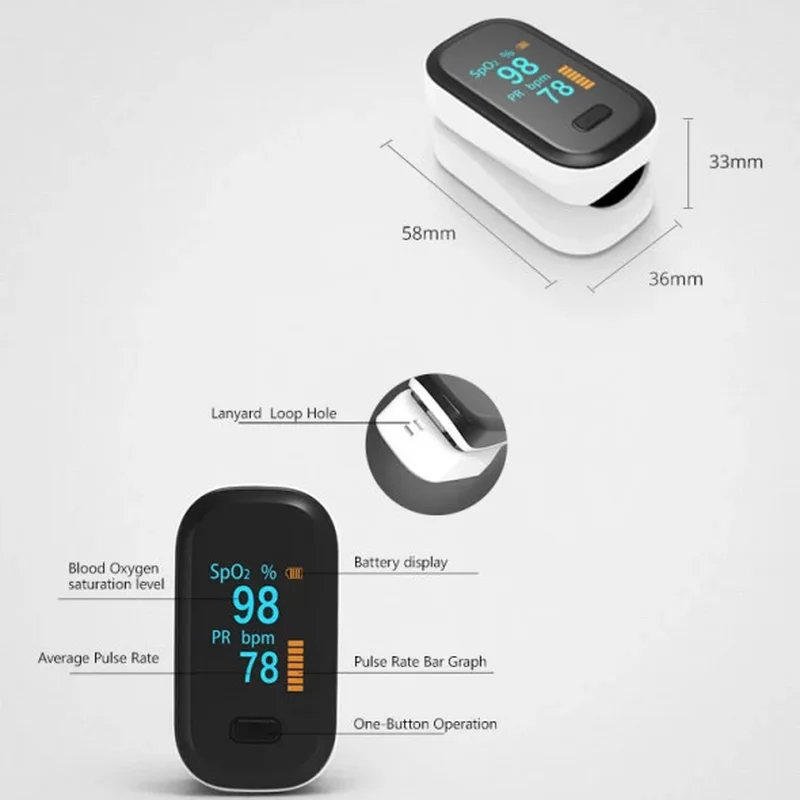 Датчик дозволяє визначити кількість кисню в капілярній крові (рівень сатурації (SpO2, %) норма 95-99%, а також виміряти частоту серцевих скорочень (PR, уд/хв = норма у спокої 50-90 уд/хв).