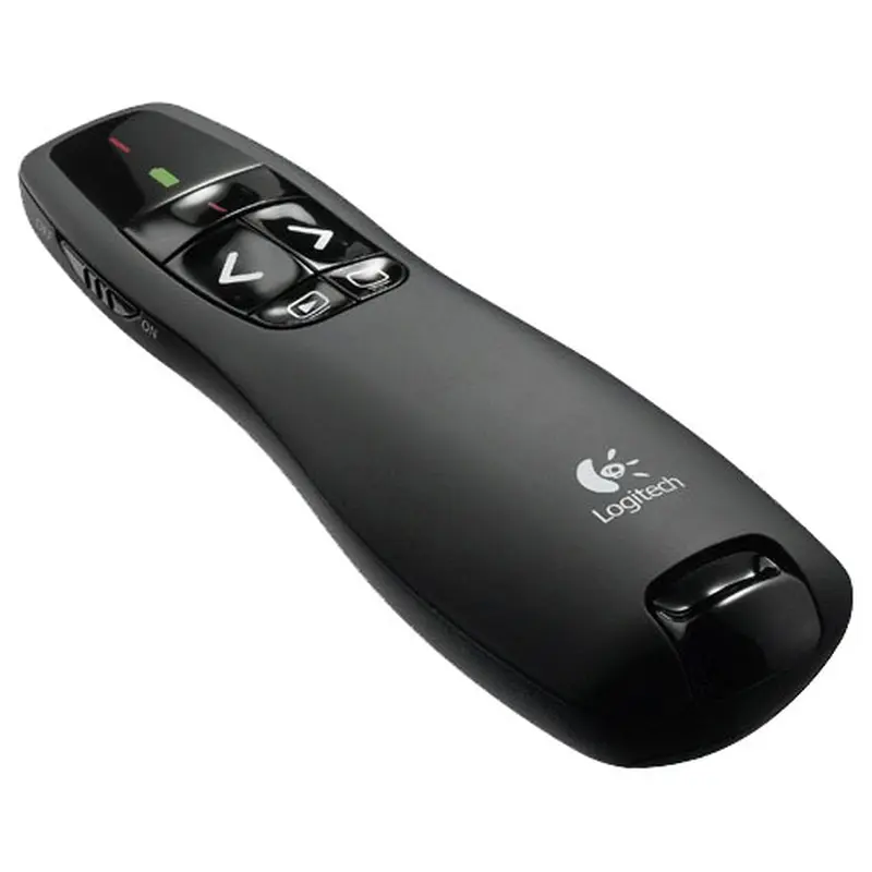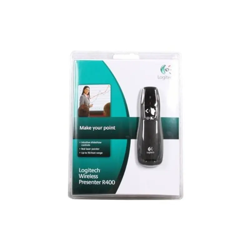 Бездротовий презентатор Logitech Wireless Presenter R400 створений спеціально для зручного і комфортного проведення виступів перед аудиторіями, які супроводжуються демонстрацією слайдів. Саме для полегшення процесу і надання йому найбільшої природності служать подібні моделі. За допомогою лазерної указки з червоним променем і інтуїтивно зрозуміло розташованим елементам управління, презентатор Logitech Wireless Presenter R400 дозволяє впевнено проводити презентації навіть в абсолютно темних приміщеннях. Радіус дії пульта до 15 м. Завдяки використанню технології, що працює на частоті 2,4 ГГц, Ви зможете оцінити свободу переміщень і можливість більш щільної роботи з аудиторією, що посилюють враження від презентації. Зручний і компактний пульт Logitech Wireless Presenter R400 з лазерною указкою стане надійним помічником у проведенні презентацій, роботі та розвагах. Особливості моделі: -2,4 ГГц -Радіус дії до 15 м -Індикатор заряду елемента живлення -Беспровідний мініатюрний приймач з функцією самоналагоджувального підключення.